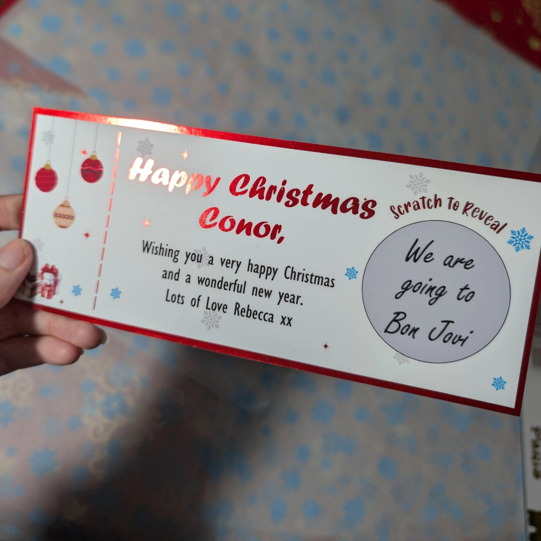 Make your present extra magical with a beautifully designed, fully personalised gift tickets. These tickets are perfect for surprising someone with a holiday, concert, weekend getaway, or any special experience. The surprise element of the 'scratch to reveal' will make the gift extra exciting! This keepsake ticket adds excitement, charm, and a touch of luxury to the moment they open it.