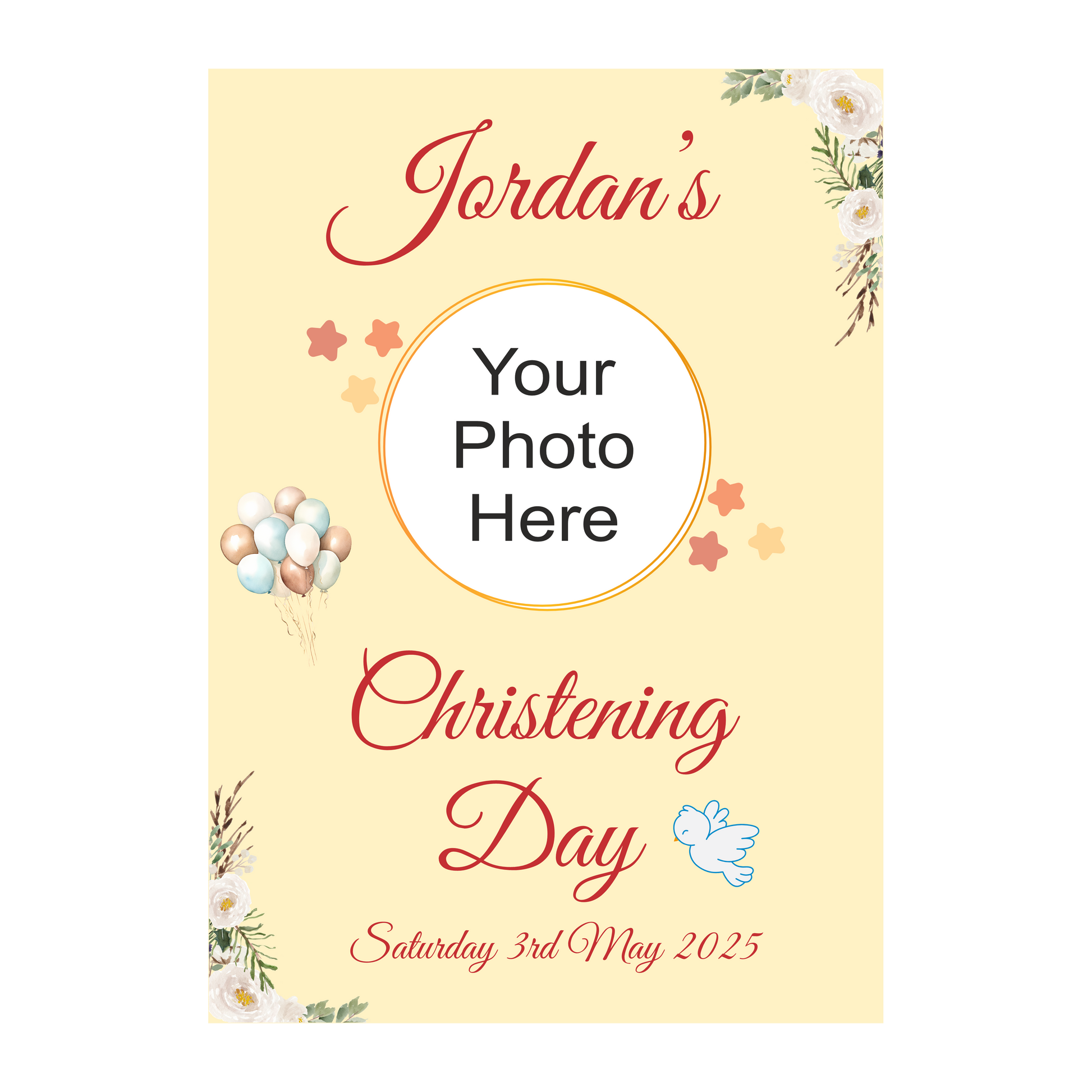 Celebrate your child’s Christening with a beautiful personalised poster 🎉. Ideal for display on a dessert table, welcome sign, or keepsake photo area, these posters add a stylish, heartfelt touch to your special day. Printed on Photo quality 300gsm gloss card to really make your poster stand out!
